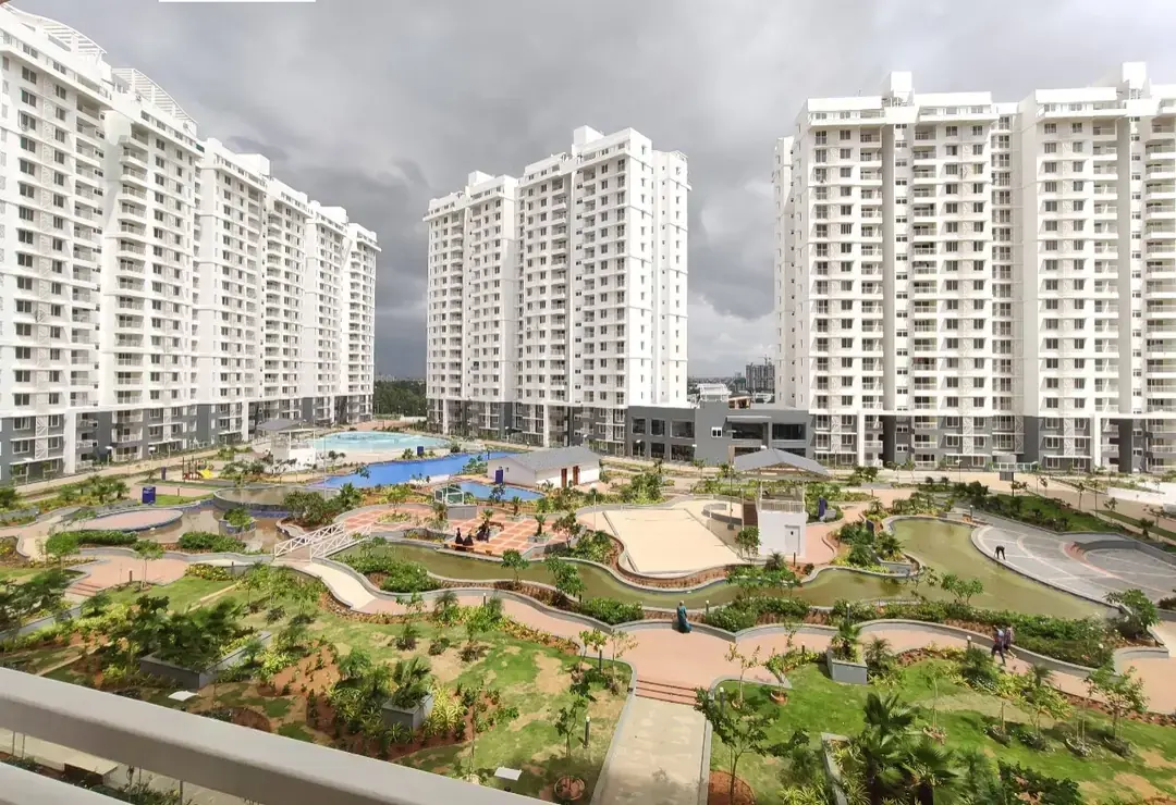 Purva Palm Beach by Puravankara Limited in North Bangalore spans 19.37 acres, inspired by tropical beach resorts with a central courtyard called "The Lagoon." The project features 19 towers with extensive amenities like a wave pool, snorkeling zone, gym, squash court, meditation room, swimming pools, sports courts, jogging track, landscaped gardens, rooftop star gazing deck, and a pet’s corner, offering a vibrant coastal living experience.